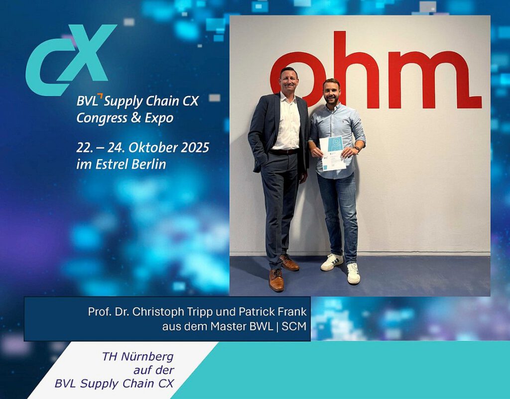 Die Aktivitäten im Rahmen der BVL Supply Chain CX unterstreichen die intensive Vernetzung der Technischen Hochschule Nürnberg in der Logistik- und SCM-Praxis. Mit der Moderation von Professor Tripp und der Auszeichnung von Patrick Frank zeigt sich einmal mehr: Praxis- und orientierte Forschung und exzellente Lehre sind zentrale Bausteine unseres Erfolgs.